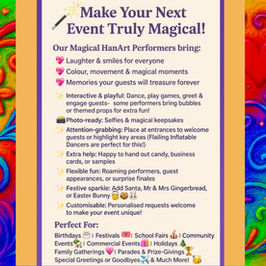 HanAhrt is a Dunedin-based entertainment business bringing colour, creativity, and joy to events.